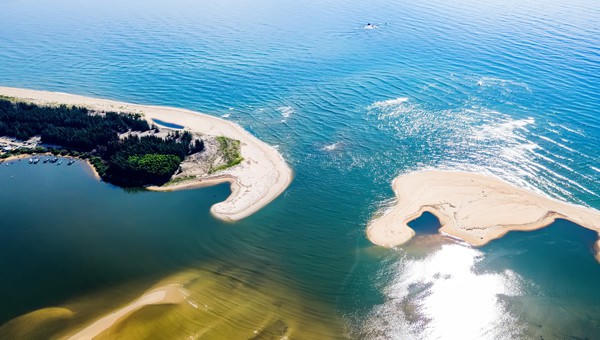 Cửa biển nhìn từ trên cao. Ảnh Duy Sinh.