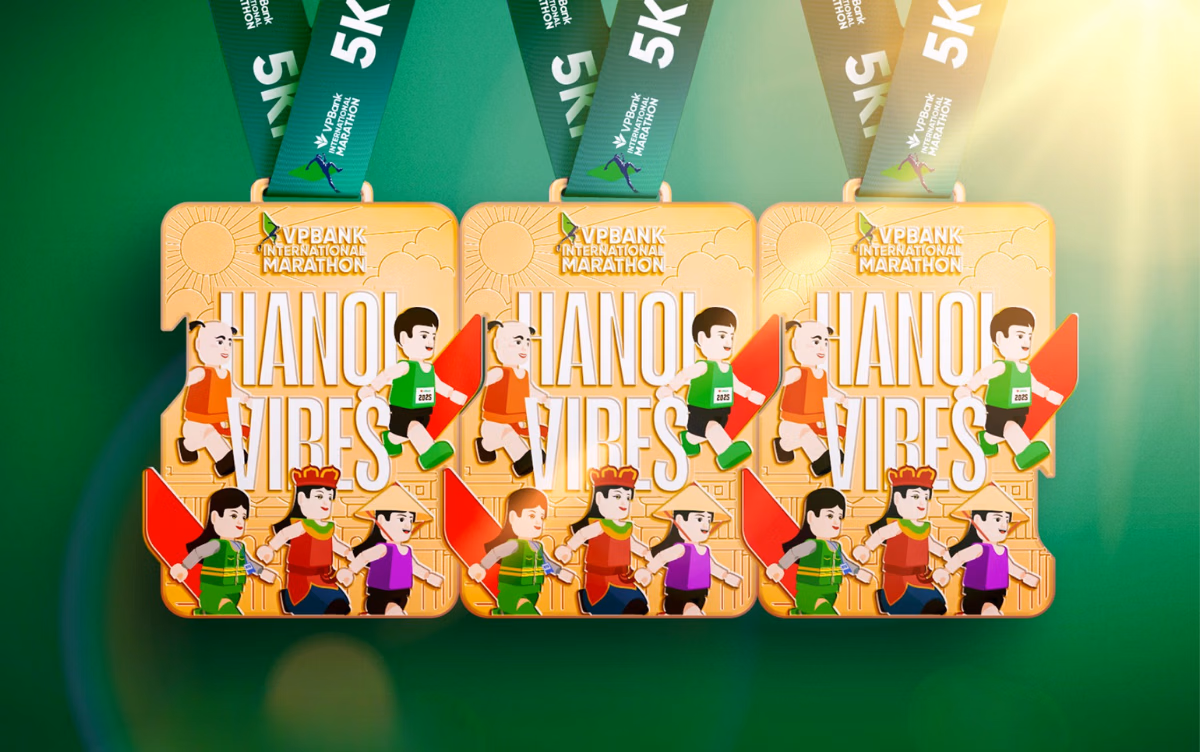 Giữ vai trò điểm nhấn biểu tượng mà vận động viên về đích nhận được là huy chương chung cuộc. Huy chương VPIM 2025 là sự hòa quyện tinh tế giữa giá trị truyền thống và tinh thần thể thao hiện đại, lấy cảm hứng từ nghệ thuật múa rối nước - nét văn hóa đặc trưng của Hà Nội. Trên huy chương, hình ảnh các nhân vật chú Tễu, cô Tiên… được tái hiện sinh động, vừa tôn vinh di sản dân gian, vừa truyền tải tinh thần hứng khởi, gắn kết của giải chạy quốc tế.