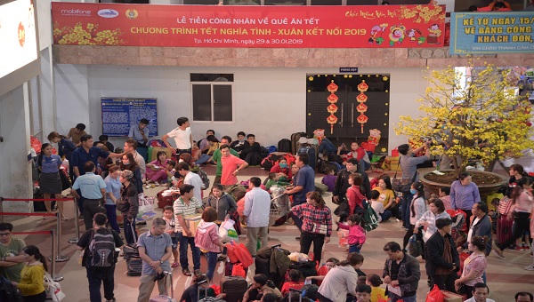Lễ tiễn công nhân về quê ăn Tết của chương trình “Tết nghĩa tình - Xuân kết nối” đã diễn ra trang trọng và đầm ấm vào 20h00 ngày 29/1/2019 tại sân ga Sài Gòn.