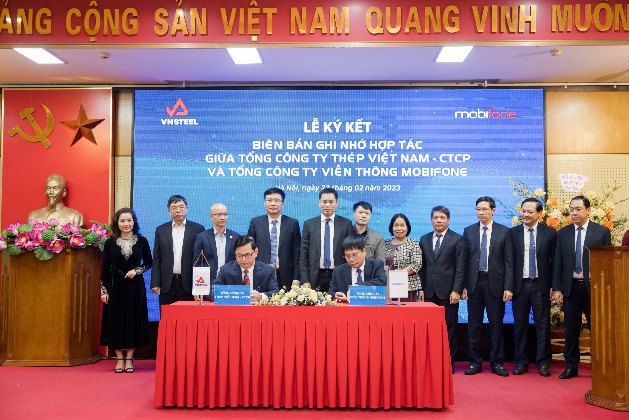 (PLVN) - Nhằm khai thác tối đa thế mạnh, sử dụng có hiệu quả nguồn lực trong việc nâng cao hiệu quả sản xuất kinh doanh và hoạt động chuyển đổi số giữa 2 doanh nghiệp, ngày 23/02/2023, tại Hà Nội, Tổng công ty Viễn thông MobiFone và Tổng công ty Thép Việt Nam (VNSTEEL) và) đã tổ chức lễ ký Biên bản ghi nhớ giữa hai đơn vị.