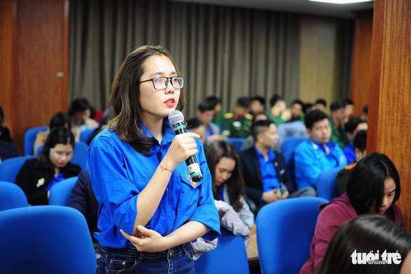 Sinh viên Nguyễn Thị Thanh Ngân (đảng viên trẻ, Trường ĐH Mở, Hà Nội) xúc động chia sẻ trên giảng đường luôn khao khát được đứng vào hàng ngũ của Đảng, là động lực, niềm tin để bạn trẻ cống hiến, trưởng thành và có trách nhiệm với đất nước.
