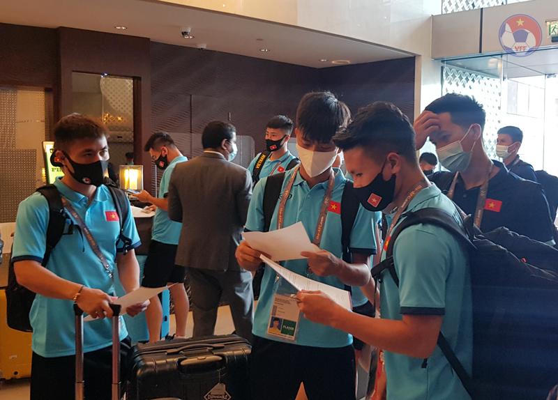 Ngay sau khi đặt chân tới khách sạn, tất cả các thành viên đội tuyển đều được lấy mẫu xét nghiệm RT-PCR.