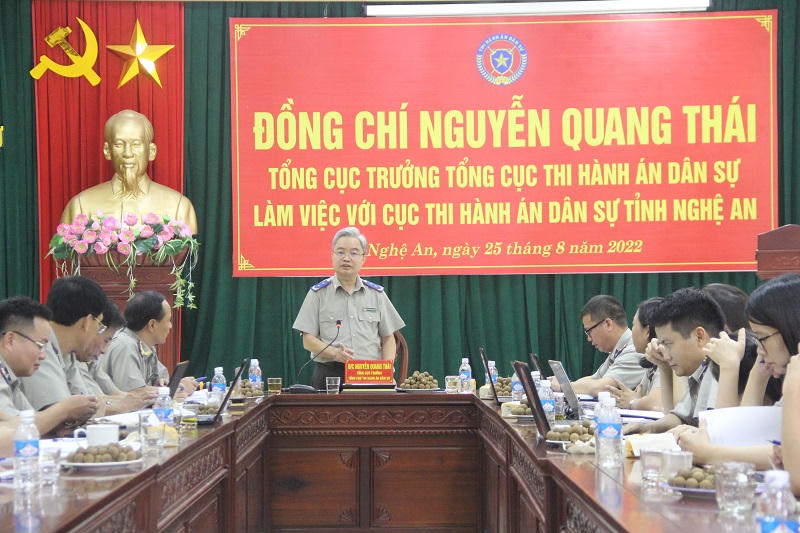 Tổng cục trưởng Nguyễn Quang Thái làm việc với Cục THADS Nghệ An |