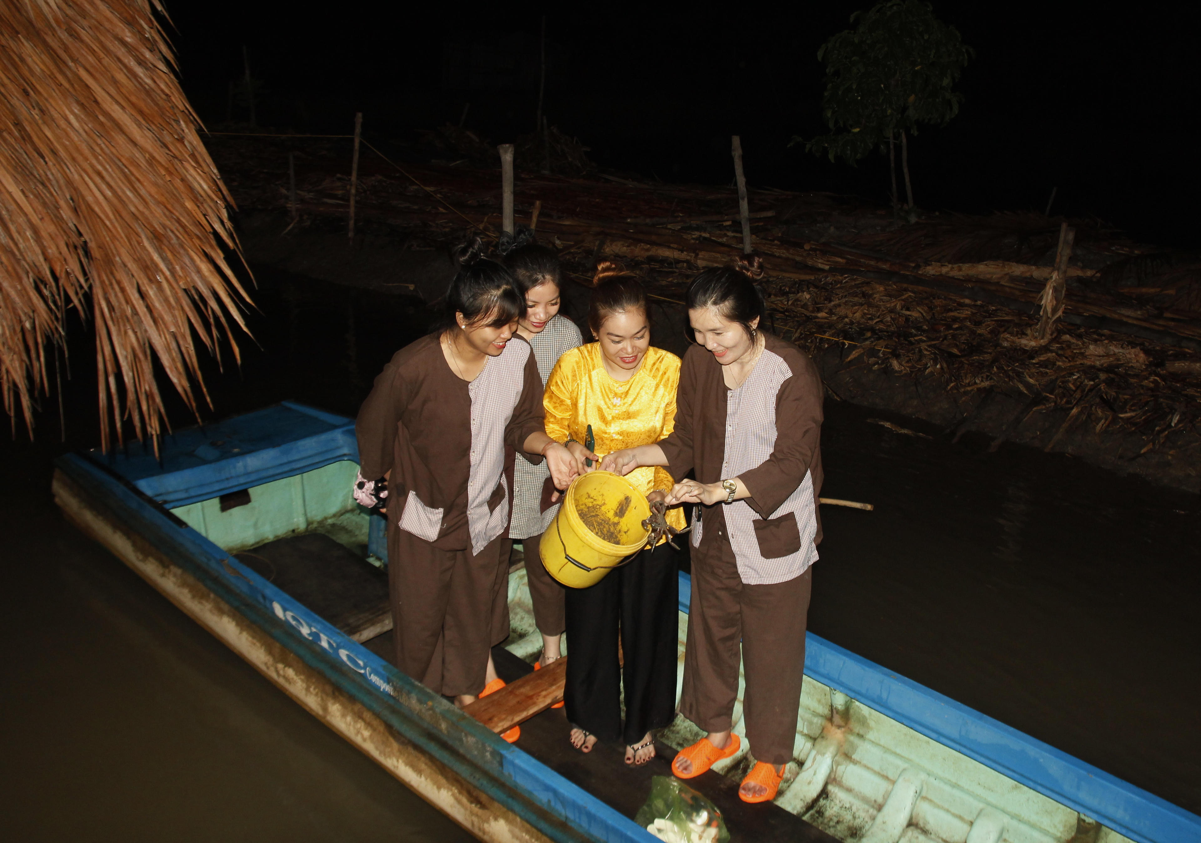 Đoàn đi trải nghiệm đặt lợp cua… tại khu du lịch sinh thái cộng đồng Quách Văn Ngãi (Cầu Rạch Vàm, xã Đất Mũi, huyện Ngọc Hiển, tỉnh Cà Mau). |