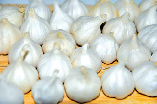 Thịt xào tỏi lát: Dùng 100 gr tỏi, 200 gr thịt nạc heo, bột nêm rượu, nước tương, bột năng với mỗi thứ vừa đủ. Tỏi rửa sạch, thái lát mỏng, sử dụng sau. Thịt nạc heo rửa sạch thái lát, sau đó thêm ít rượu, nước tương, bột năng nhào sơ. Bắc chảo lên bếp, đổ dầu cho nóng, thêm thịt, xào nhanh. Sau khi thịt ngả màu, thêm tỏi lát, tiếp tục đảo đều. Sau khi thịt và tỏi chín, nêm bột nêm, múc lên đĩa. Món này có tác dụng tư âm, ích khí, ôn trung, tán hàn thấp, thích hợp dùng chữa đau bụng kinh thể hàn thấp, cũng thích hợp dùng cho người thể chất hàn thấp. Tỏi tính ôn táo, người đang bệnh mắt kiêng dùng.