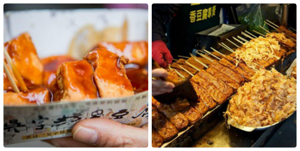 Nổi tiếng bậc nhất phải nhắc đến đậu hũ thối chiên, với vỏ ngoài giòn rụm, bên trong mềm béo ngậy, thử một lần là mê. Những xiên đậu phụ truyền thống ăn kèm với rau bắp cải muối và rất hợp để ngồi thưởng thức dưới những tán cây cổ thụ to gần đó.
