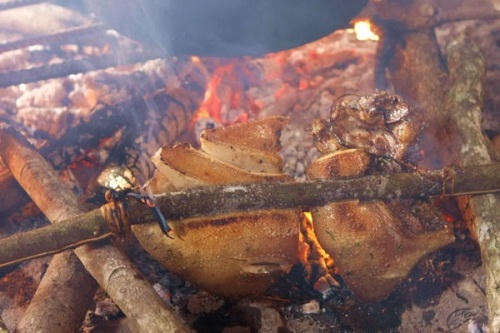 Món ăn đầu tiên khi nhắc đến Mù Cang Chải phải là thịt lợn đen nướng. Lợn lông đen được nuôi thả tự nhiên có thịt chắc, thơm. Miếng thịt có cả nạc, mỡ và bì, tẩm ướp gia vị với hạt mắc khén rồi bọc ngoài vài lớp lá dong tươi, kẹp cây rừng cho chắc trước khi mang nướng trên than hoa. Người nướng phải chú ý lật liên tục sao cho lớp lá dong bên ngoài cháy khô nhưng khi bóc ra, miếng thịt bên trong chín, bên ngoài vàng ươm. Sau đó mới thái thành miếng vừa ăn bày vào đĩa, ăn ghém với vài cọng rau thơm. Thịt nướng vừa tới đượm mùi thơm của lửa, chín mềm. Ảnh: wn.com