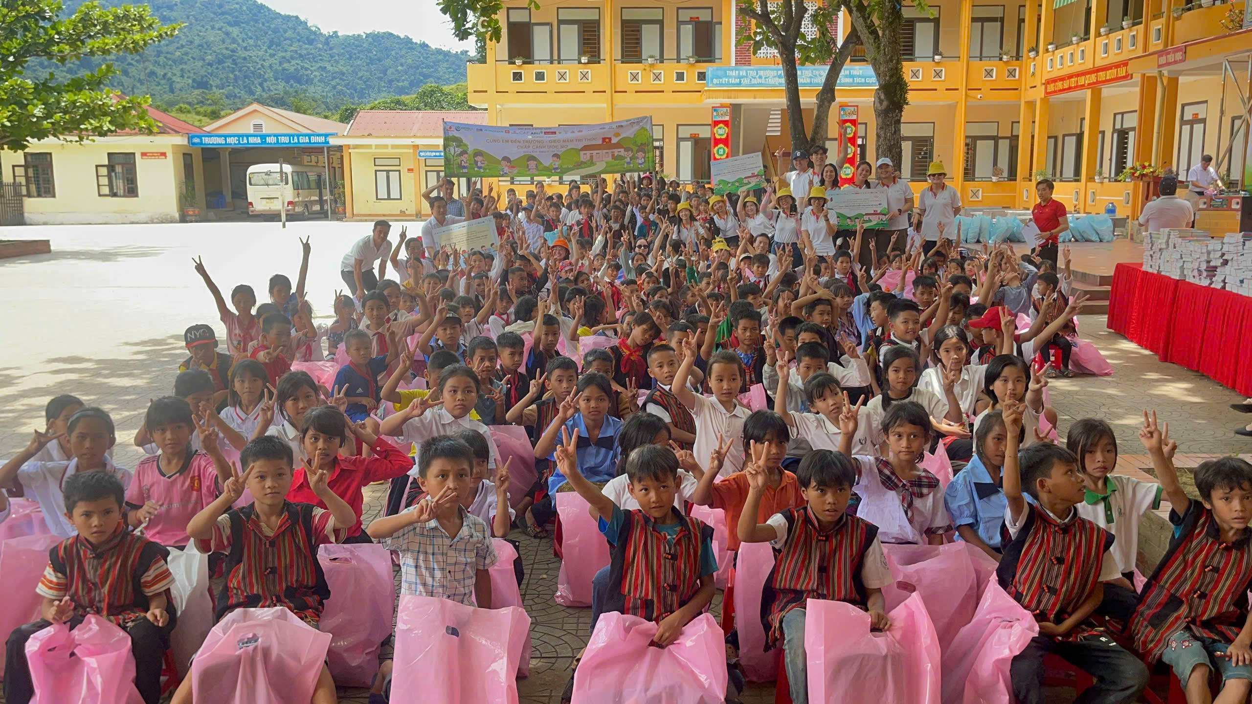 Trên sân trường nằm giữa đại ngàn Trường Sơn, buổi lễ trao tặng diễn ra trong không khí ấm áp và xúc động. Đoàn công tác gồm các doanh nhân thành viên của CLB Doanh nhân Gia đình TP. Hồ Chí Minh đã vượt hàng trăm cây số và đường đèo núi để đến với học sinh vùng biên giới, nơi mà hơn 85% học sinh là người dân tộc Bru Vân Kiều, điều kiện sống và học tập còn nhiều thiếu thốn.