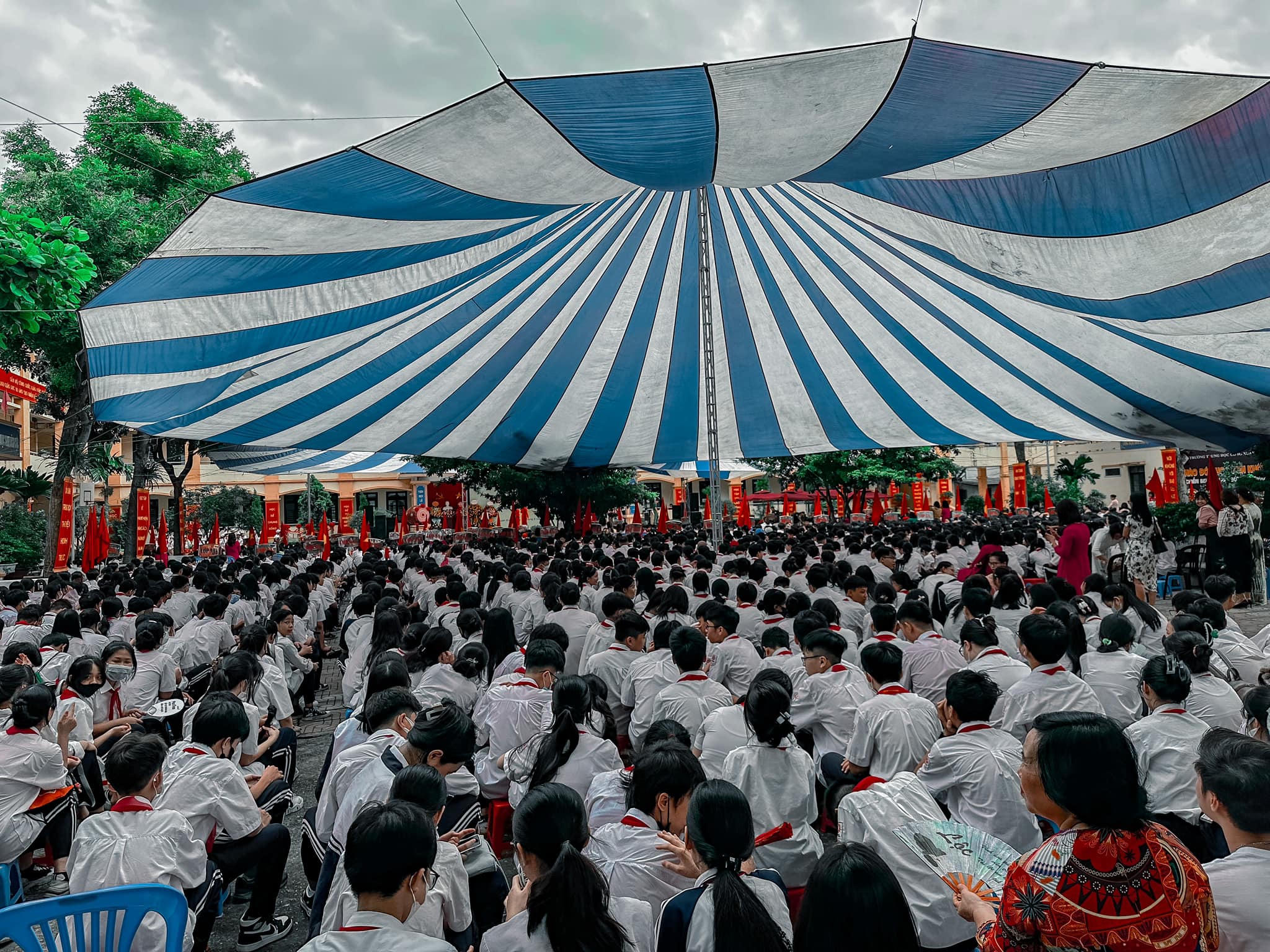 Người bố trẻ có nick Lê Xuân Vững chia sẻ: “Hôm nay năm học mới 2023 - 2024 bắt đầu trong tiết thu thật đẹp, trời xanh, mây trắng, gió heo may nhè nhẹ thổi làm khí thế ngày khai trường thật nhiều cảm xúc.