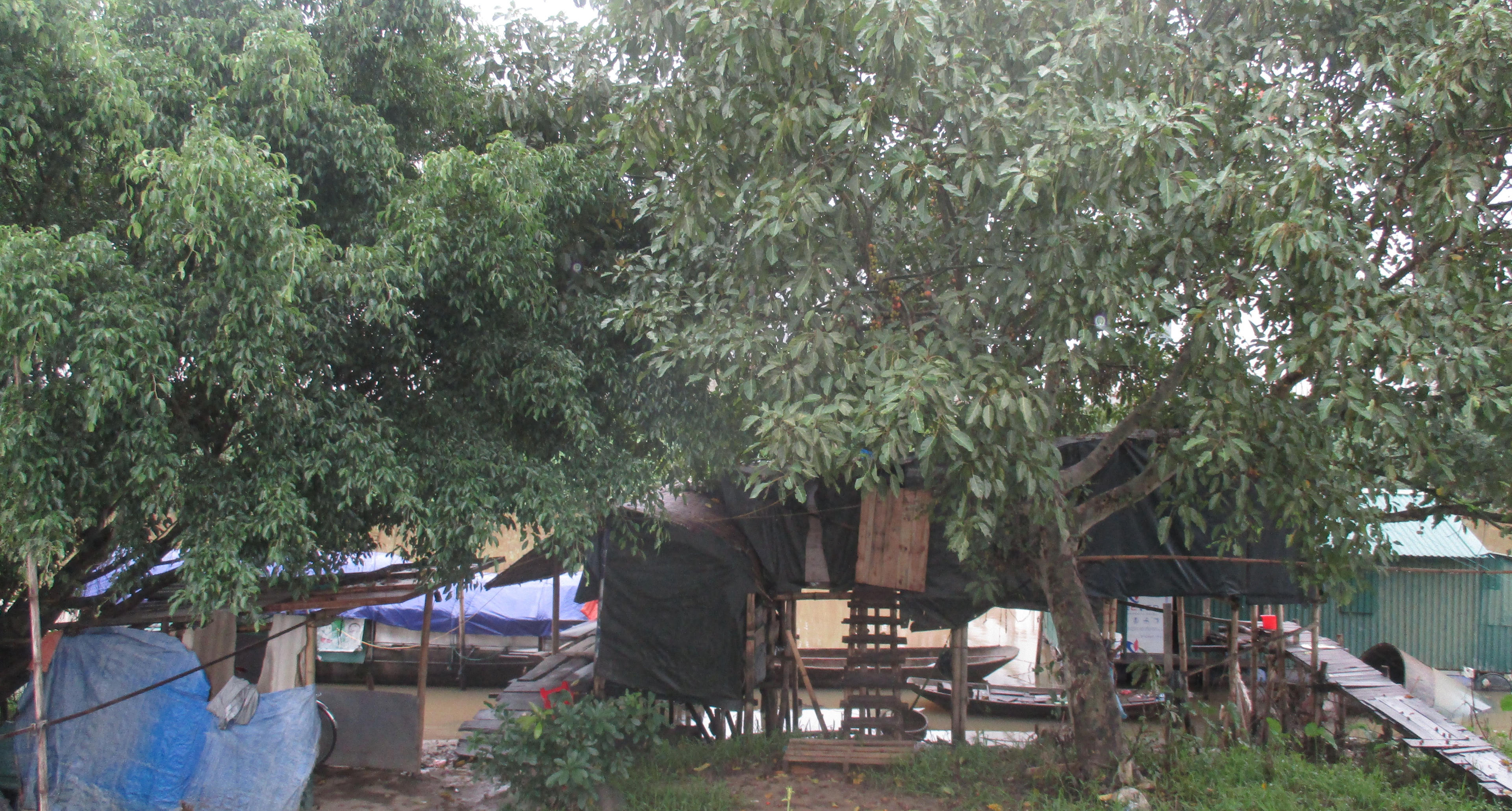 Chỗ ở của anh chị và 2 đứa con chỉ khoảng 6 - 7 m2. Đứng trên bờ sông nhìn xuống không khác gì một tổ chim nằm lưng chừng gốc cây gần đó. Giọng anh đượm buồn: “Cực chẳng đã mà ở đây, mưa bão đến là cuốn bay chỗ ở của mấy gia đình. Thế là mọi người lại đi mua tre, nứa về dựng lại. Cơn bão năm ngoái chúng tôi chẳng ai còn chỗ mà ở. Thỉnh thoảng chính quyền ra yêu cầu chuyển đi chỗ khác, những chẳng biết đi đâu, đành liều ở đây”.