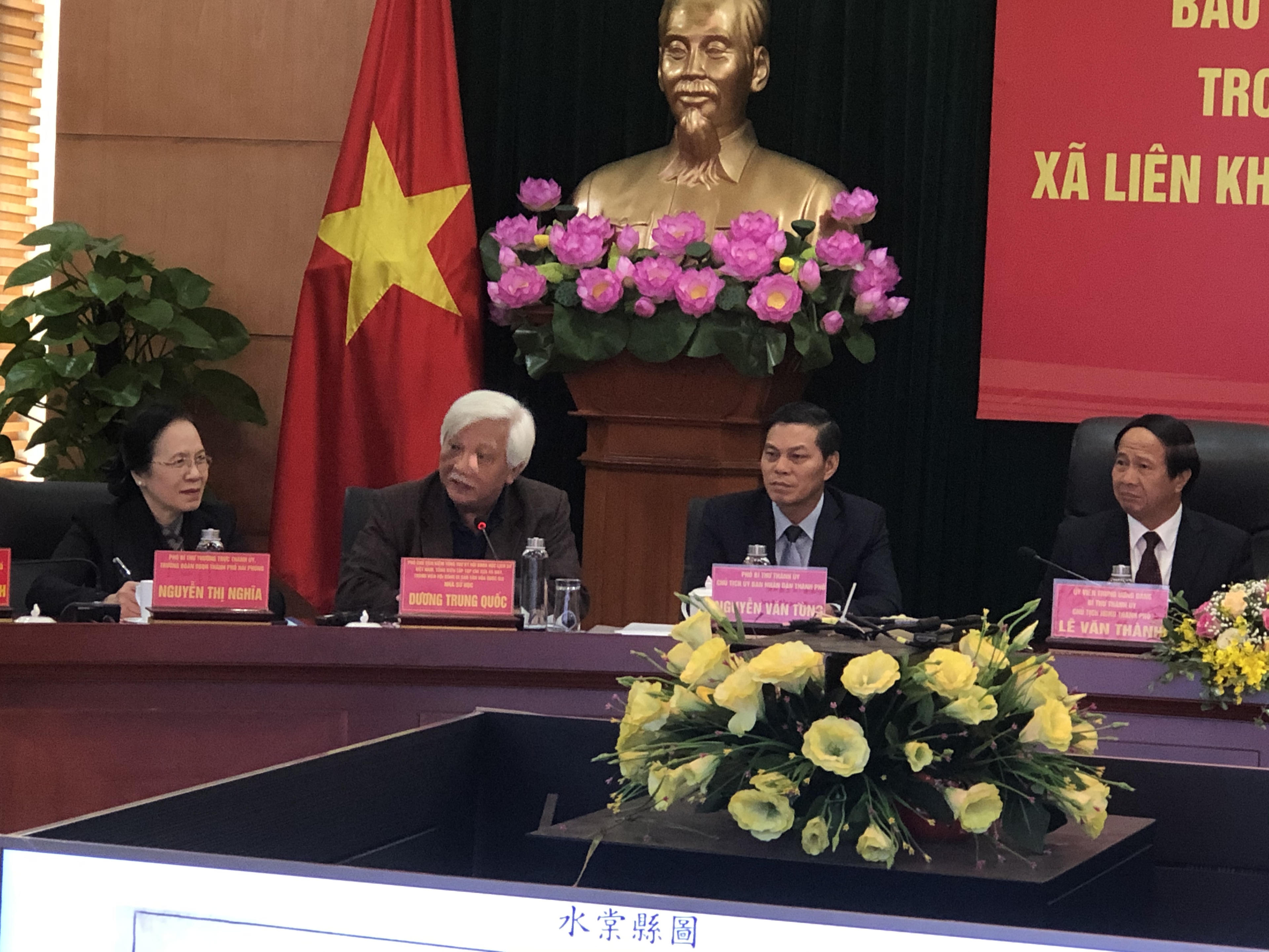 “Lâu nay, có nhiều ý kiến về việc xác định trận Bạch Đằng ở Quảng Ninh hay Hải Phòng. Và bây giờ chúng ta có thể khẳng định, trận Bạch Đằng chủ yếu dựa vào địa thế dân hai bên bờ sông hai địa phương đều có đóng góp, nhưng xét về cấu trúc địa chất thì việc ém quân bên Thủy Nguyên phù hợp hơn, vì có núi non phù hợp với phục binh, còn bên Quảng Yên thì trống trải. Có khả năng lớn đây là nơi đã được quân ta dụ địch vào để đánh”, GS.TSKH Vũ Minh Giang nhận định.
