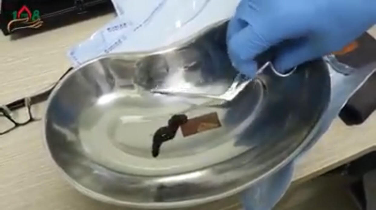 Qua kiểm tra bác sĩ phát hiện bên trong mũi phải của bệnh nhân có một con đỉa đang kí sinh bên trong và đã tiến hành gắp loại bỏ ra khỏi mũi của bệnh nhân.