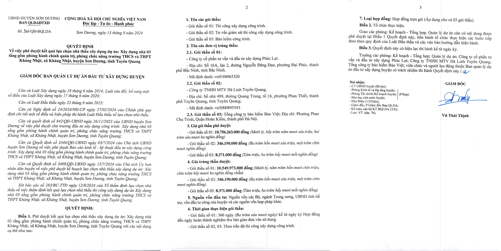 Ngày 03/08/2024, Ban Quản lý dự án đầu tư xây dựng huyện Chiêm Hóa, tỉnh Tuyên Quang phê duyệt kết quả lựa chọn nhà thầu Gói thầu số 01: Thi công xây dựng và thiết bị công trình thuộc dự án Xây dựng cơ sở vật chất Trường THCS Ngọc Hội, xã Ngọc Hội, huyện Chiêm Hóa, tỉnh Tuyên Quang cho Công ty cổ phần tư vấn và đầu tư xây dựng Phúc Lợi trúng thầu 10.982.984.000 VNĐ, giá gói thầu 11.183.184.000 VNĐ (tiết kiệm 1,8%).
