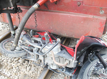 Cú đâm mạnh khiến anh Đinh Văn Định tử vong ngay tại chỗ, xe máy bị kéo lê một đoạn dài khoảng hơn 100m mới dừng lại. Tại hiện trường, chiếc xe máy bị hư hỏng nặng, nằm sát đường sắt.