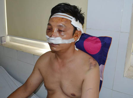 Nạn nhân được người dân đưa đi cấp cứu tại bệnh viện tỉnh Nghệ An với nhiều vết thương phần mềm, gãy sống mũi và một vết thương tại vùng đầu nghi bị súng bắn. Bệnh nhân được phẫu thuật sống mũi, hiện còn dị vật trong đầu vẫn chưa gắp ra được.