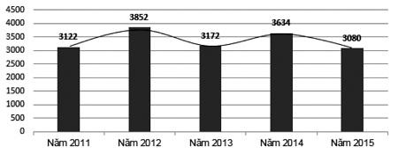 Trong năm 2015, các bộ, cơ quan đã trình Chính phủ, Thủ tướng Chính phủ ban hành hoặc ban hành theo thẩm quyền 1.001 văn bản, (gồm nghị định, quyết định của Thủ tướng Chính phủ, thông tư, thông tư liên tịch), giảm 11 văn bản so với năm 2014, trong đó có 53 văn bản quy định chi tiết thi hành luật, pháp lệnh, nâng tổng số văn bản được Chính phủ, Thủ tướng Chính phủ, các bộ, ngành ban hành trong nhiệm kỳ 2011-2015 là 3.571 văn bản.