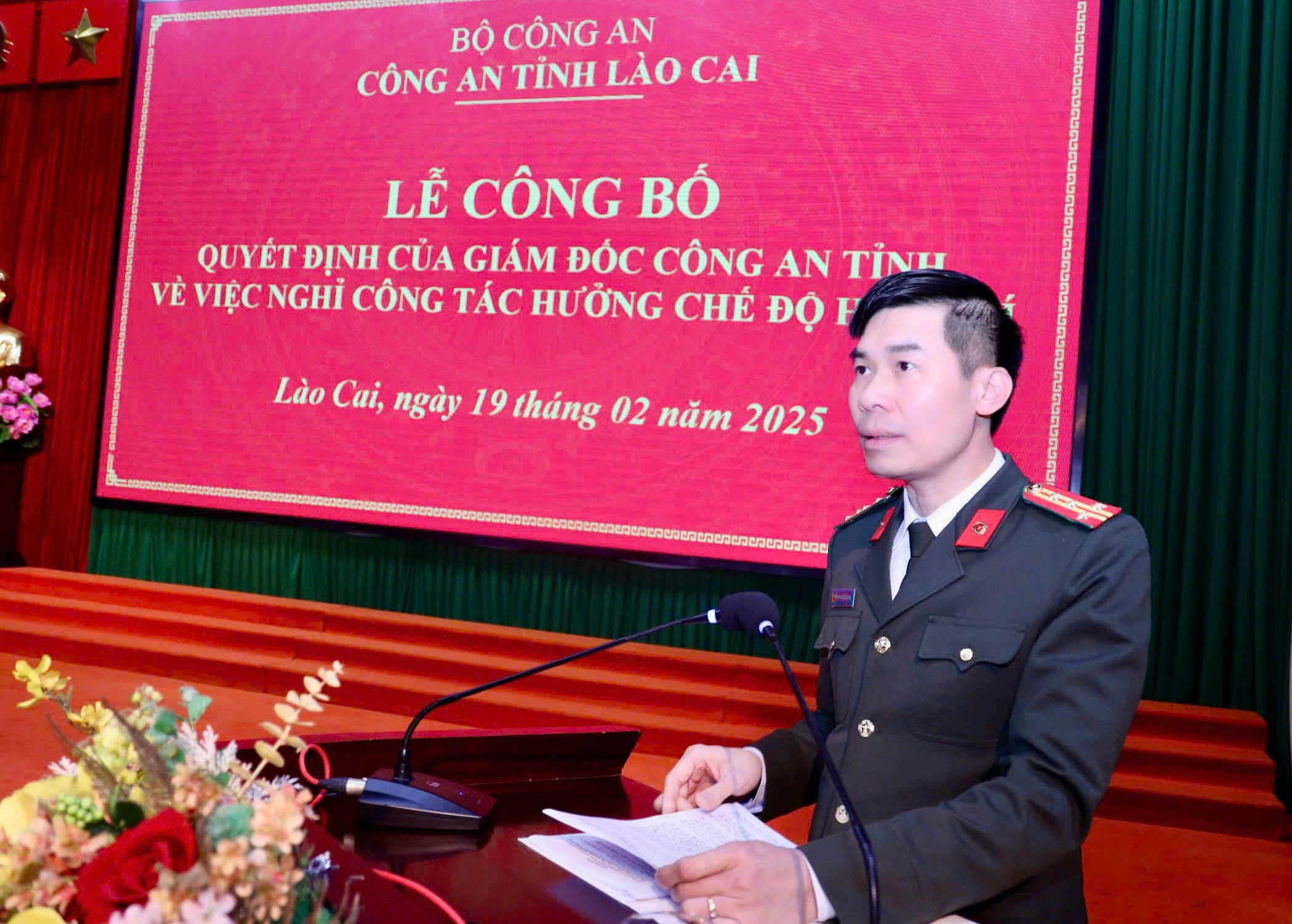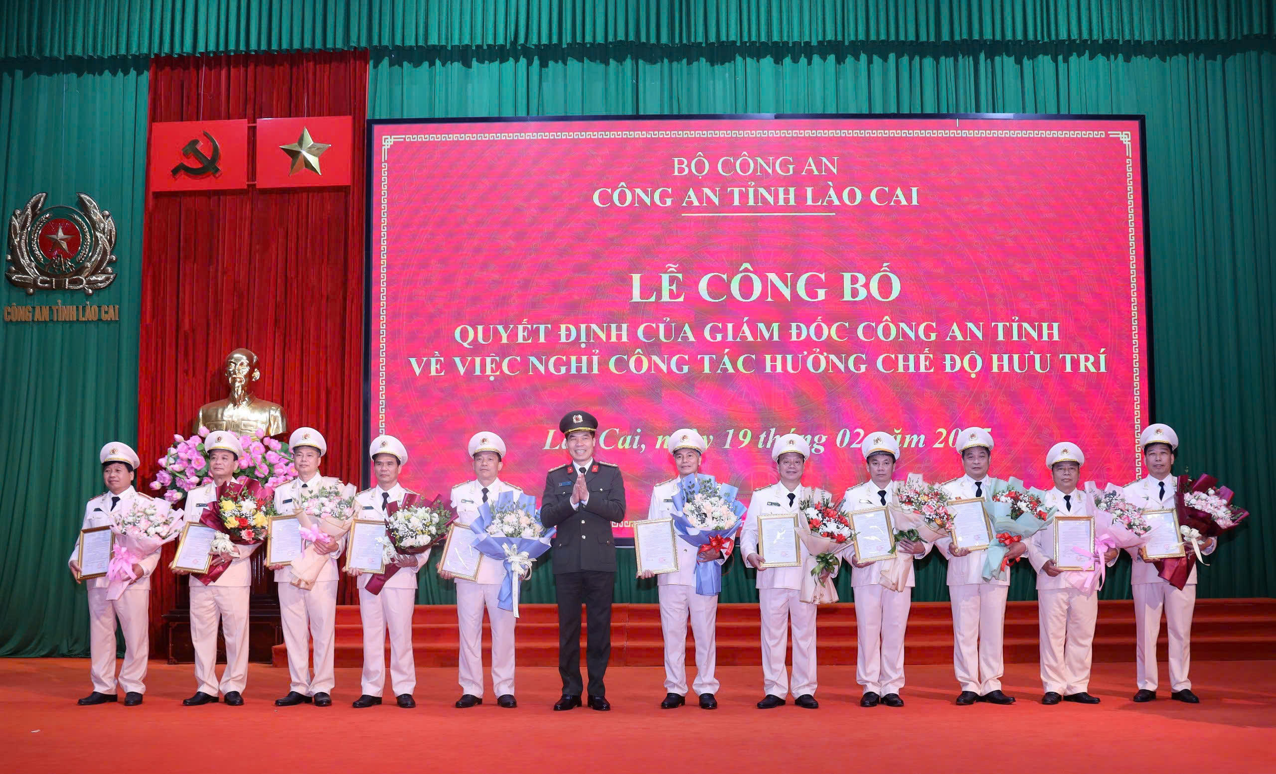 (PLVN) - Vừa qua, Công an tỉnh Lào Cai tổ chức lễ công bố Quyết định nghỉ hưu đối với các lãnh đạo cấp phòng, cấp huyện thuộc Công an tỉnh.
