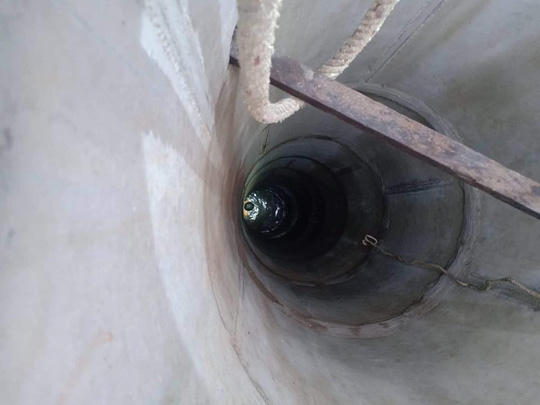 Một thanh niên nhảy xuống giếng cầm dao tự cứa cổ