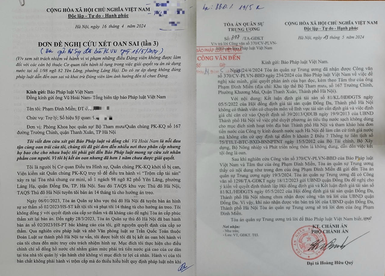 (PLVN) - Liên quan sự việc ông Phạm Đình Miền có đơn gửi đến Báo PLVN, mới đây, Toà án Quân sự Trung ương (TAQSTƯ) có văn bản cho biết đang chờ phản hồi, ý kiến của UBND quận Đống Đa (Hà Nội).