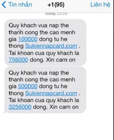 Trong tin nhắn gửi đi, nhóm lừa đảo tự nhận là Bộ Viễn thông Việt Nam triển khai tặng 500% giá trị thẻ nạp, hướng dẫn chủ tài khoản Facebook cách truy cập vào website lừa đảo và kêu gọi họ giới thiệu cho người thân.