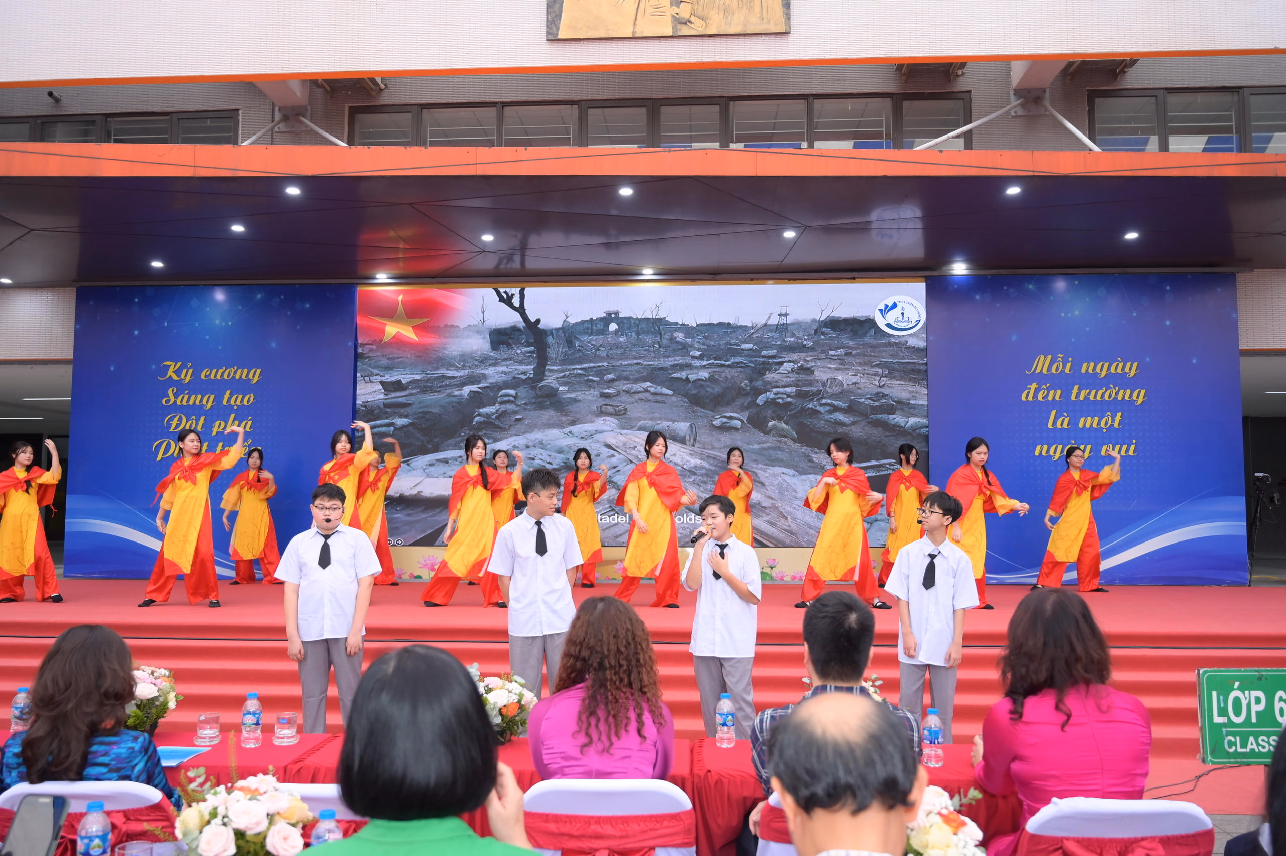 Những thời khắc lịch sử không thể nào quên của dân tộc lại thêm một lần nữa tái hiện trong Chương trình qua hình thức sân khấu hóa do học sinh các lớp 8A1, 8A3, 7A6 thực hiện.
