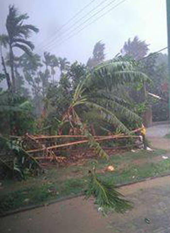 Mưa khiến một số hộ dân bị thủng mái tôn, hư hỏng cây quả như chuối, mít... Rất may lúa ở ngoài đồng đã được bà con gặt đưa về nhà nên không bị thiệt hại.
