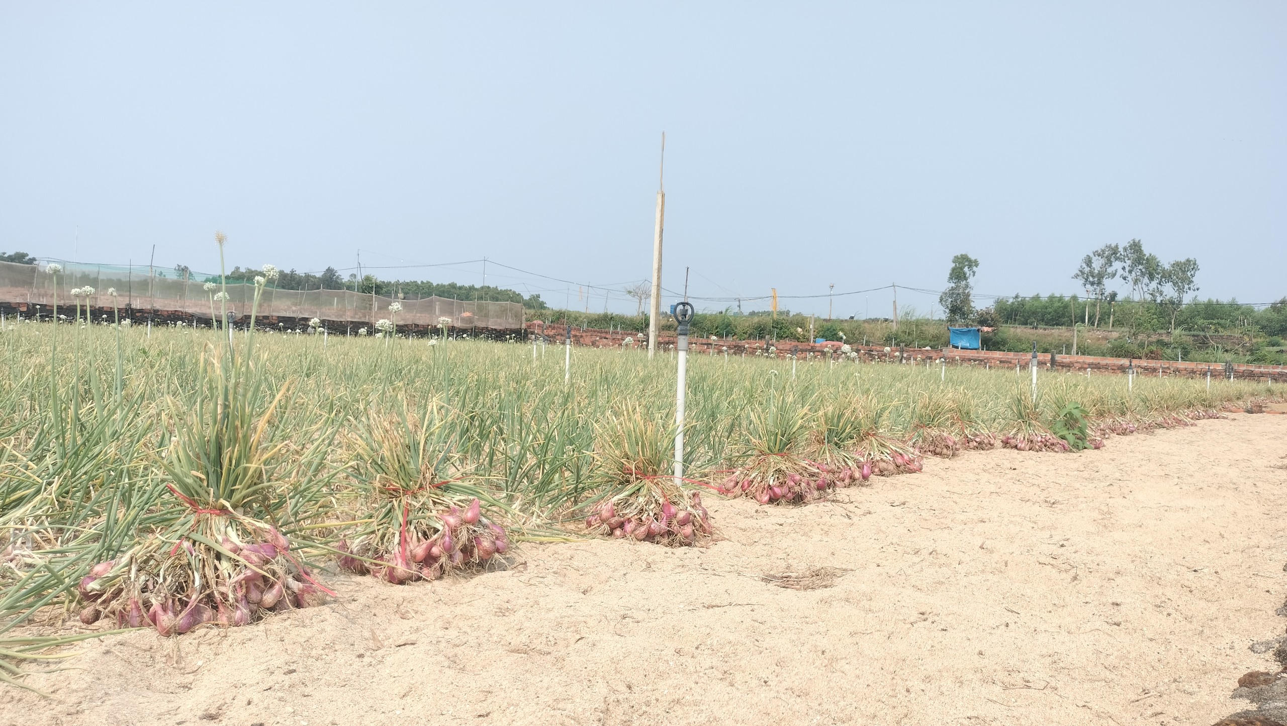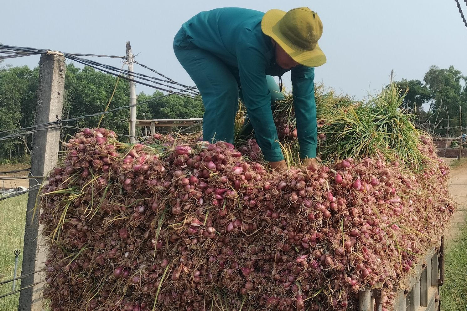 Hành tím sau khi thu hoạch được vận chuyển về nhà. Hành tím hiện đang có giá khoảng 30.000 đồng/kg, mang lại khoản thu nhập đáng kể cho người dân. |