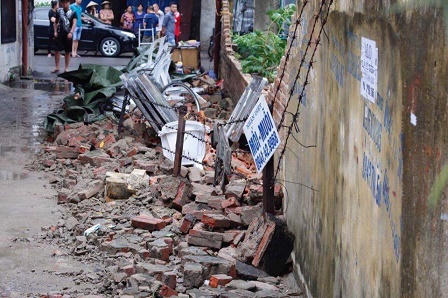 Bức tường bị đổ được xây dựng từ nhiều năm trước, cao tới hơn 2 m, chạy dài gần 50 m, đoạn tường bao bị đổ dài khoảng 30m.