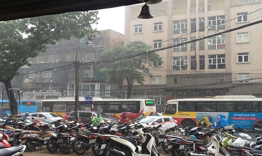 Khoảng 9h30 hôm nay, mây đối lưu từ phía bắc di chuyển tới sát khu vực trung tâm thành phố Hà Nội. Sau đó, các quận, huyện ở trung tâm thành phố mưa lớn.