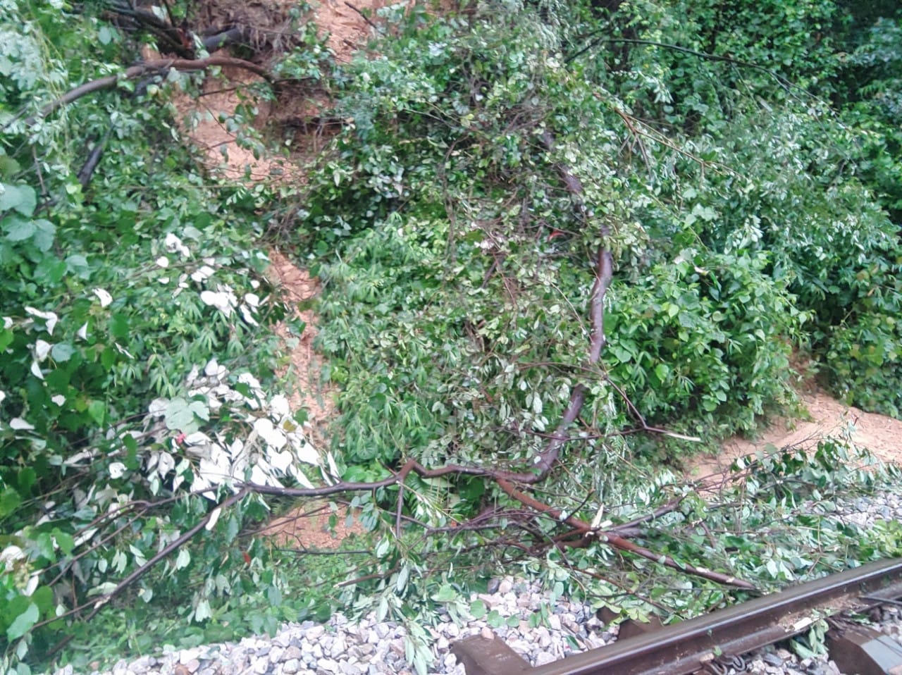 Ông Lê Văn Hùng, Chủ tịch UBND xã Đức Liên thông tin, vào khoảng 1h hôm nay, do ảnh hưởng mưa lớn, phía taluy âm của tuyến đường sắt Bắc - Nam tại Km354+900 đến 355+400, khu gian Yên Duệ - Hòa Duyệt (thuộc địa bàn thôn Liên Châu, xã Đức Liên, huyện Vũ Quang, tỉnh Hà Tĩnh) bị sạt lở, sụt mái, nhiều đất đá trôi khỏi nền đường và khoét hàm ếch tại một số vị trí khiến các đoàn tàu bị ách tắc ở hai phía.