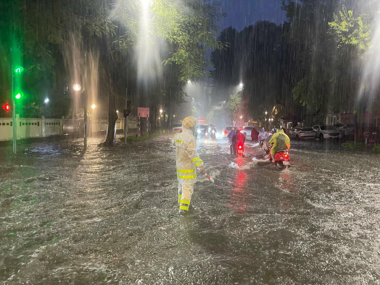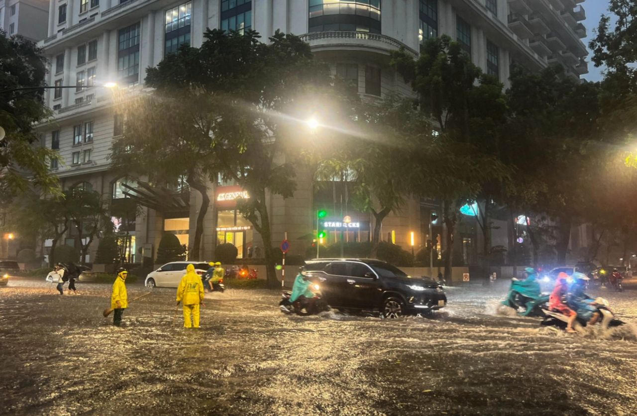Tại khu vực phố Tràng Tiền, quận Hoàn Kiếm (Ảnh: Thông tin Phòng chống thiên tai) |