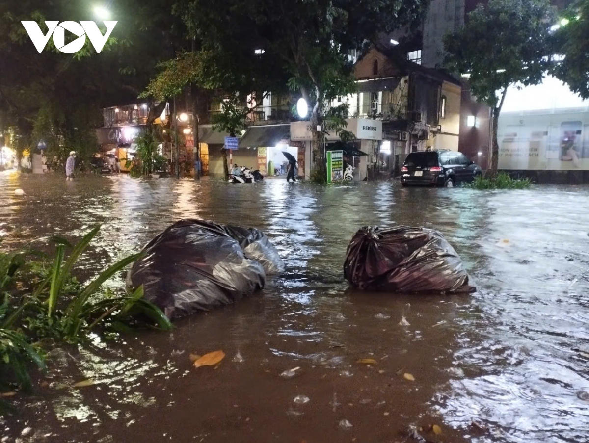 Thời điểm 19h15 xuất hiện các điểm úng ngập: Phùng Hưng, Thụy Khuê, Điện Biên Phủ - Nguyễn Tri Phương, Nguyễn Khuyến, Phan Bội Châu – Nguyễn Thường Kiệt, Mạc Thị Bưởi, ngã năm Bà Triệu, Hàng Bài – Hai Bà Trưng, Tông Đản, Liên Trì – Nguyễn Gia Thiều, Huỳnh Thúc Kháng, Nguyễn Chính, đường Hoàng Mai (đường vào UBND phường Hoàng Văn Thụ), hầm chui xe lửa phố Thiên Đức...