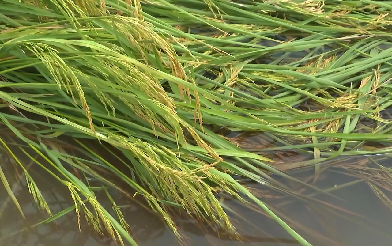 Toàn huyện vụ lúa này xuống giống hơn 3.300ha; đến nay đã thu hoạch khoảng 300ha. Mưa lớn kéo dài không chỉ làm ngập mà còn làm sập lúa. Nếu thời tiết không chuyển biến tích cực, nguy cơ ảnh hưởng năng suất lúa nhiều hơn.
