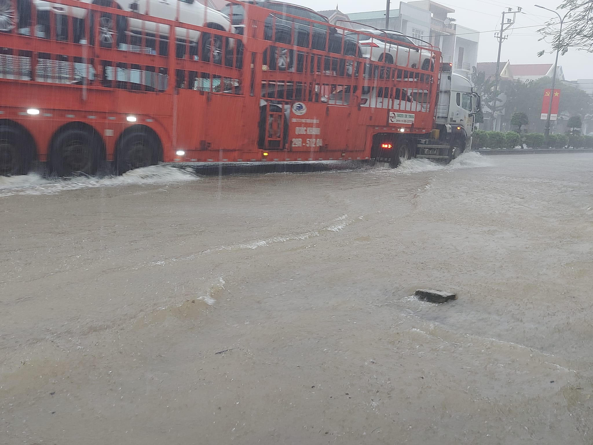 Sáng 13/11, Quốc lộ 1 qua huyện Can Lộc bị ngập sâu. Ảnh: Bích Liên |