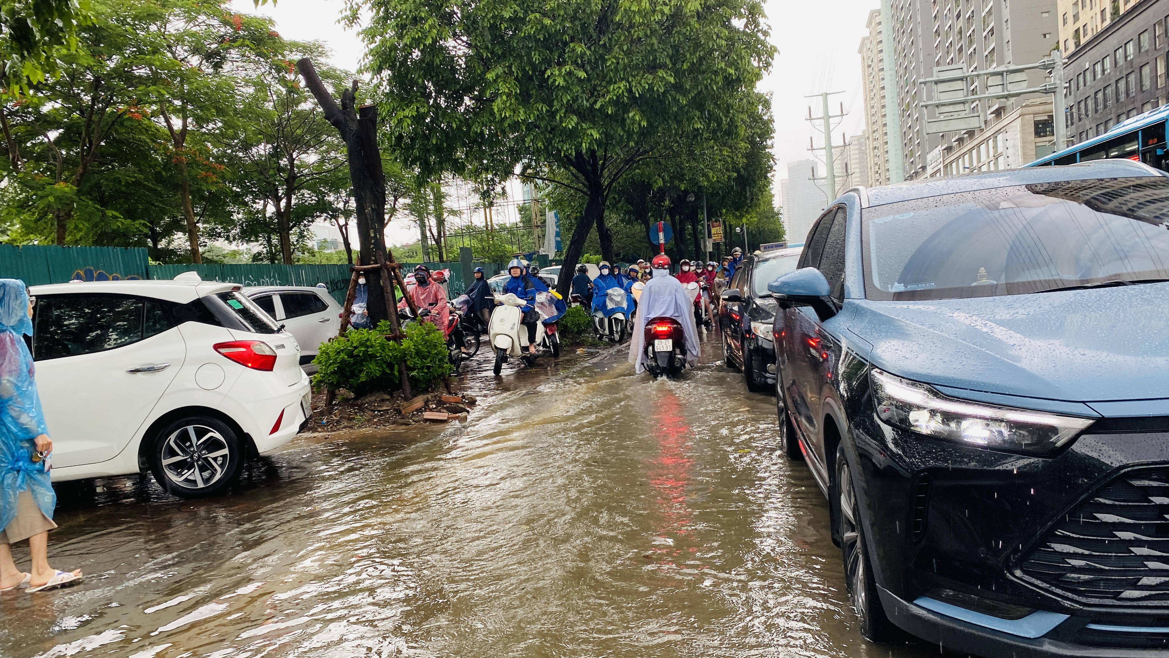 Trận mưa kéo dài từ khoảng 6h hôm nay, 5/6. Tại một số tuyến đường: Cầu Giấy, Nguyễn Khang, Lê Văn Lương, Tố Hữu... , không ít điểm bị ngập sâu. Nhiều xe máy phải "quay đầu" vì không thể di chuyển. Khá nhiều phương tiện cố đi qua vùng nước ngập đã bị chết máy.
