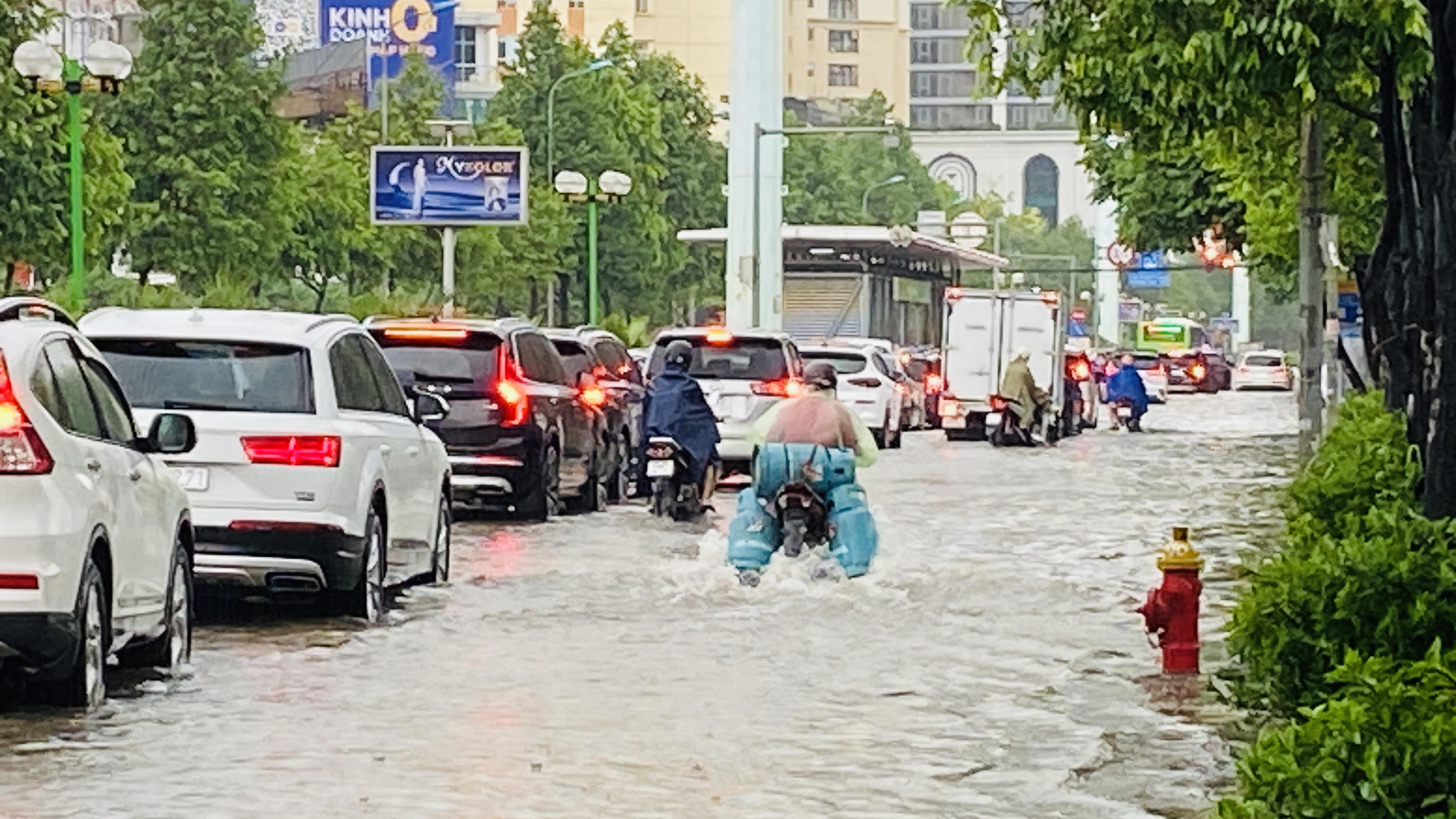 Mưa lớn nhiều giờ, nhiều đường phố Hà Nội ngập sâu, sóng dềnh như sông