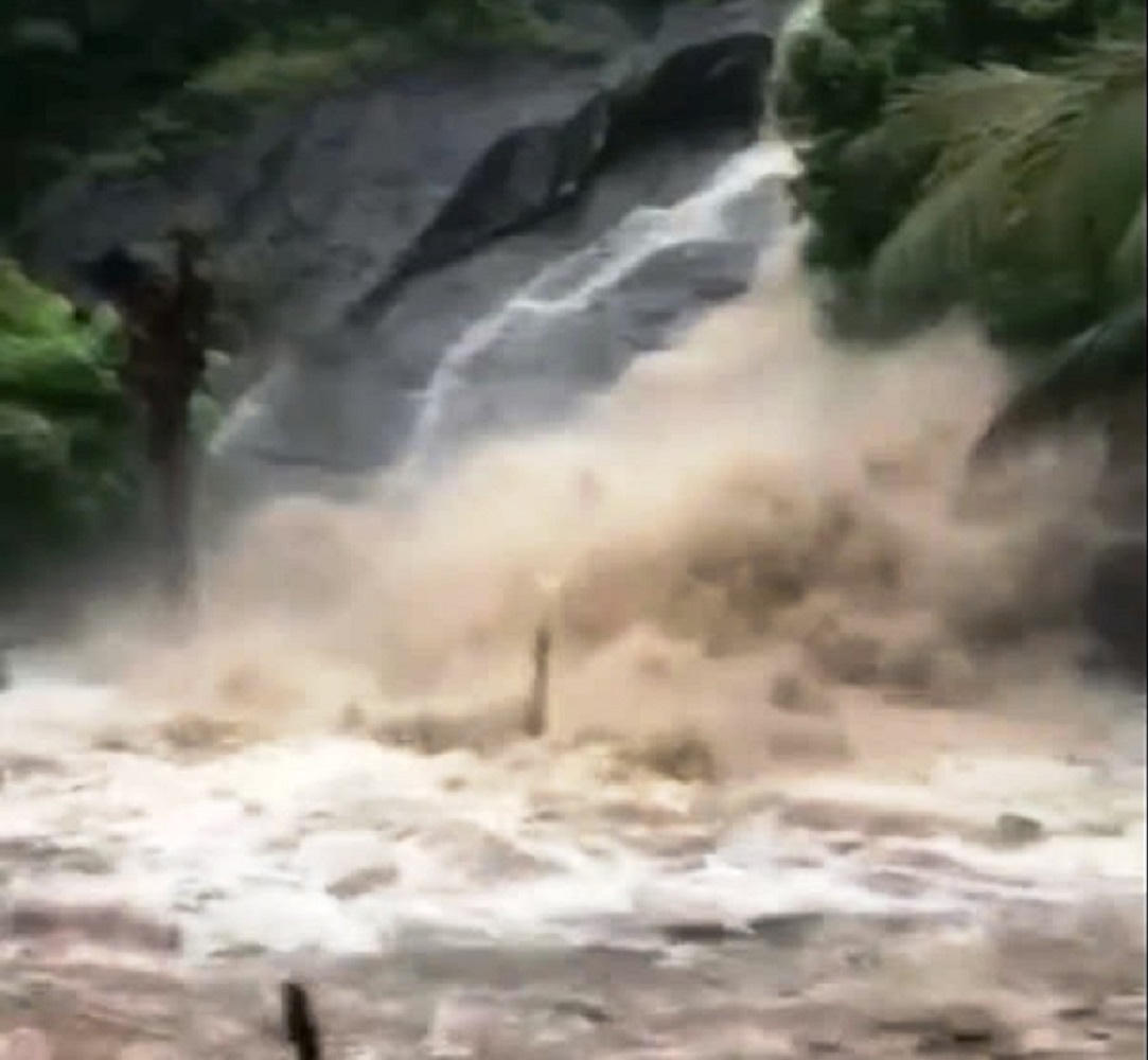 Nước chảy cuồn cuồn trên đảo Cù Lao Chàm. (Ảnh cắt từ clip). |