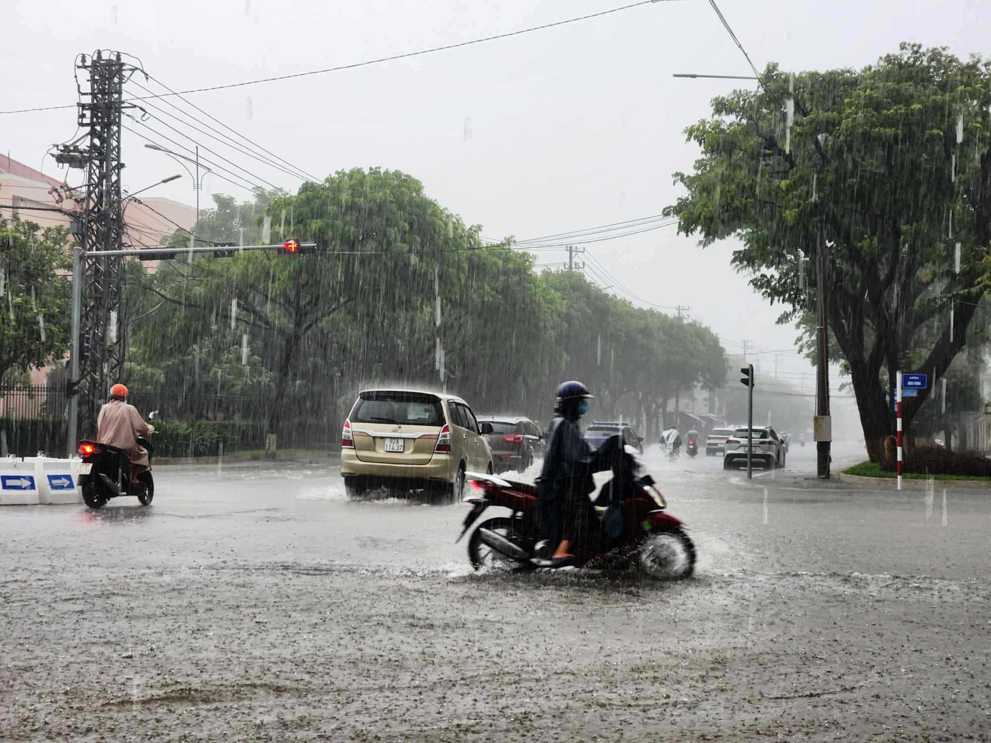 Mưa lớn suốt đêm, nhiều ô tô “chết nước” giữa lòng TP Tam Kỳ