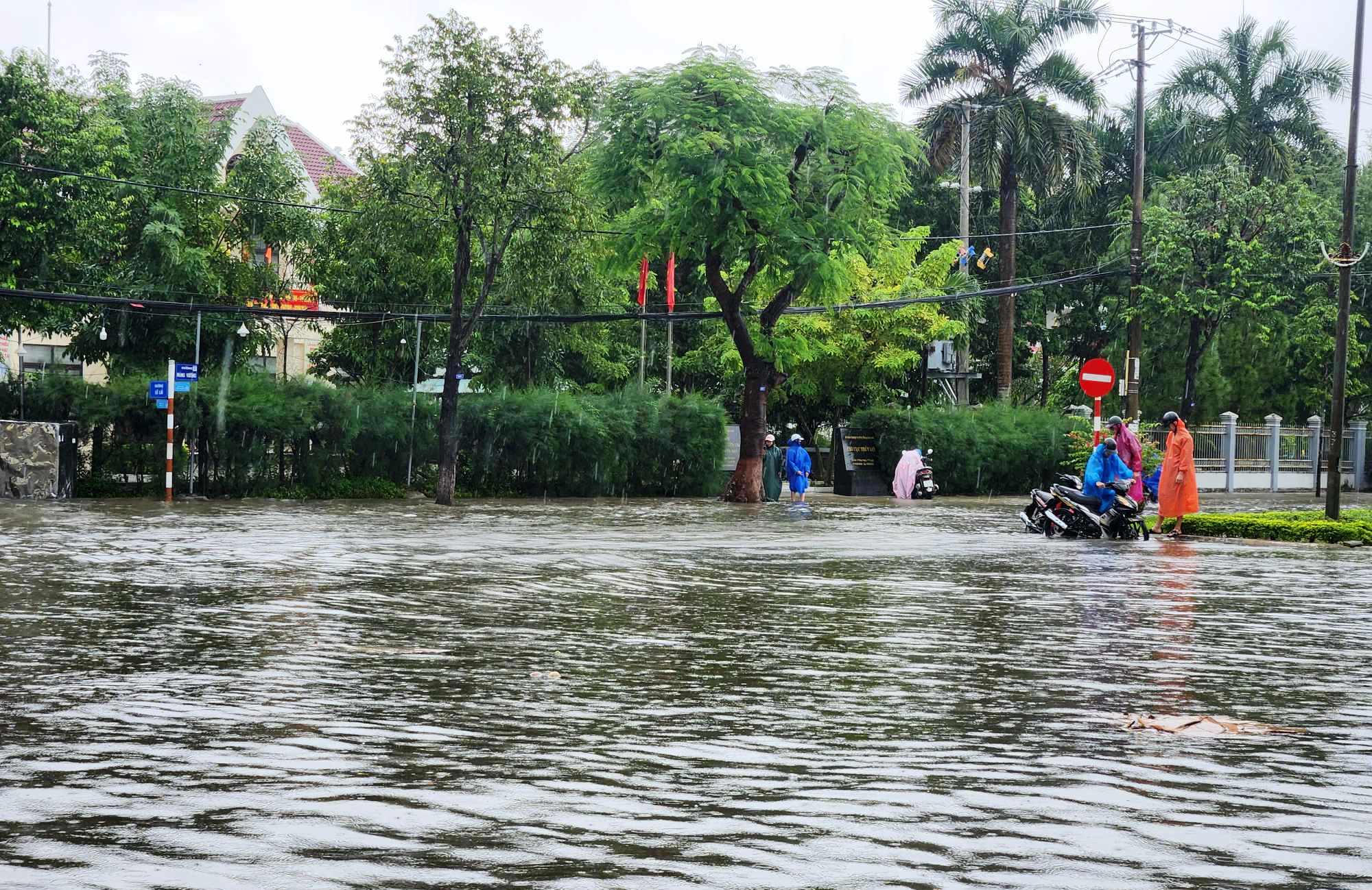 Trong sáng 21/10, trời mưa rất to,nước ngập sâu, khiến giao thông bị hỗn loạn, nhiều xe chết máy, nhiều phương tiện phải quay đầu tìm hướng khác để di chuyển. Tại một số tuyến đường, chính quyền địa phương phải căn dây cảnh báo ngập sâu, nguy hiểm, không cho phương tiện qua lại để đảm bảo an toàn.