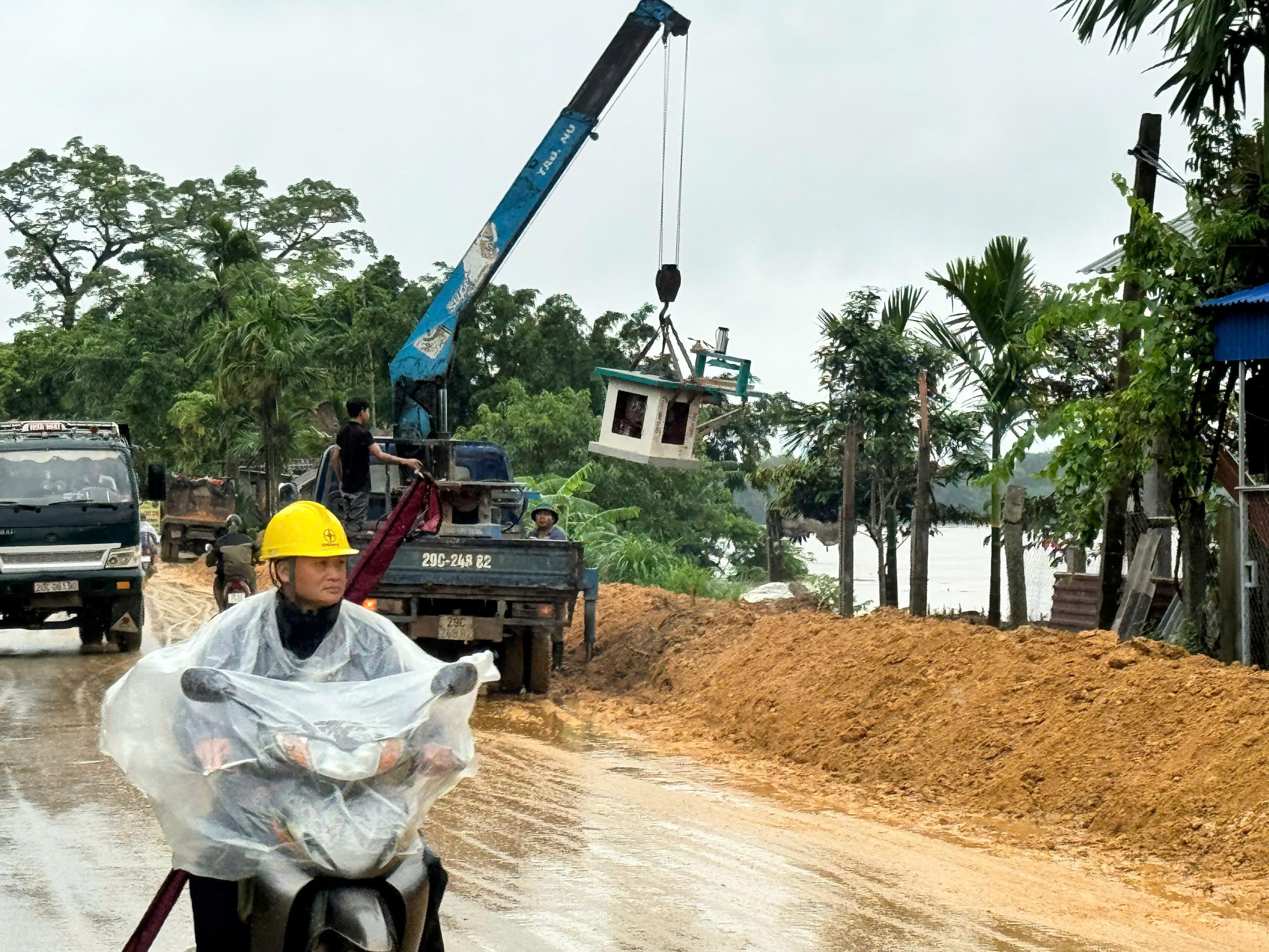 Công tác phòng chống lũ đang được chính quyền địa phương và người dân gấp rút triển khai. |