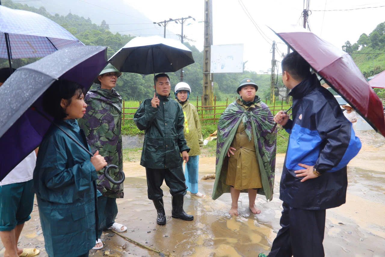 Ông Nguyễn Quốc Huy, Phó Chủ tịch UBND huyện Bát Xát chỉ đạo trực tiếp tại hiện trường vùng bão lũ. |