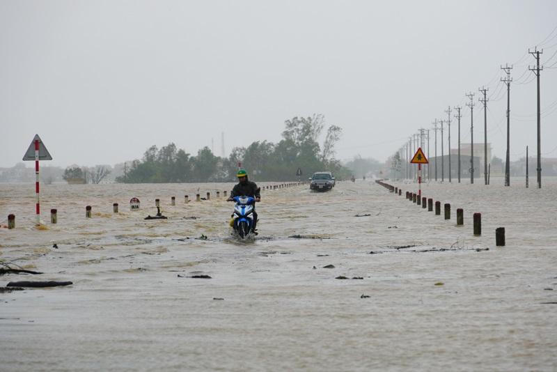 Nhiều tuyến đường trên địa bàn huyện Lệ Thủy bị ngập sâu |