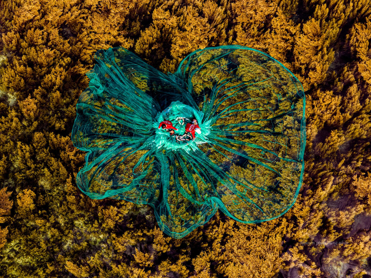 (PLVN) - Thời điểm này, nhìn từ trên cao, mặt biển xã Nhơn Hải như phủ lên một lớp thảm vàng lộng lẫy, trải dài cả một vùng rộng lớn, tạo nên bức tranh thiên nhiên tuyệt đẹp.