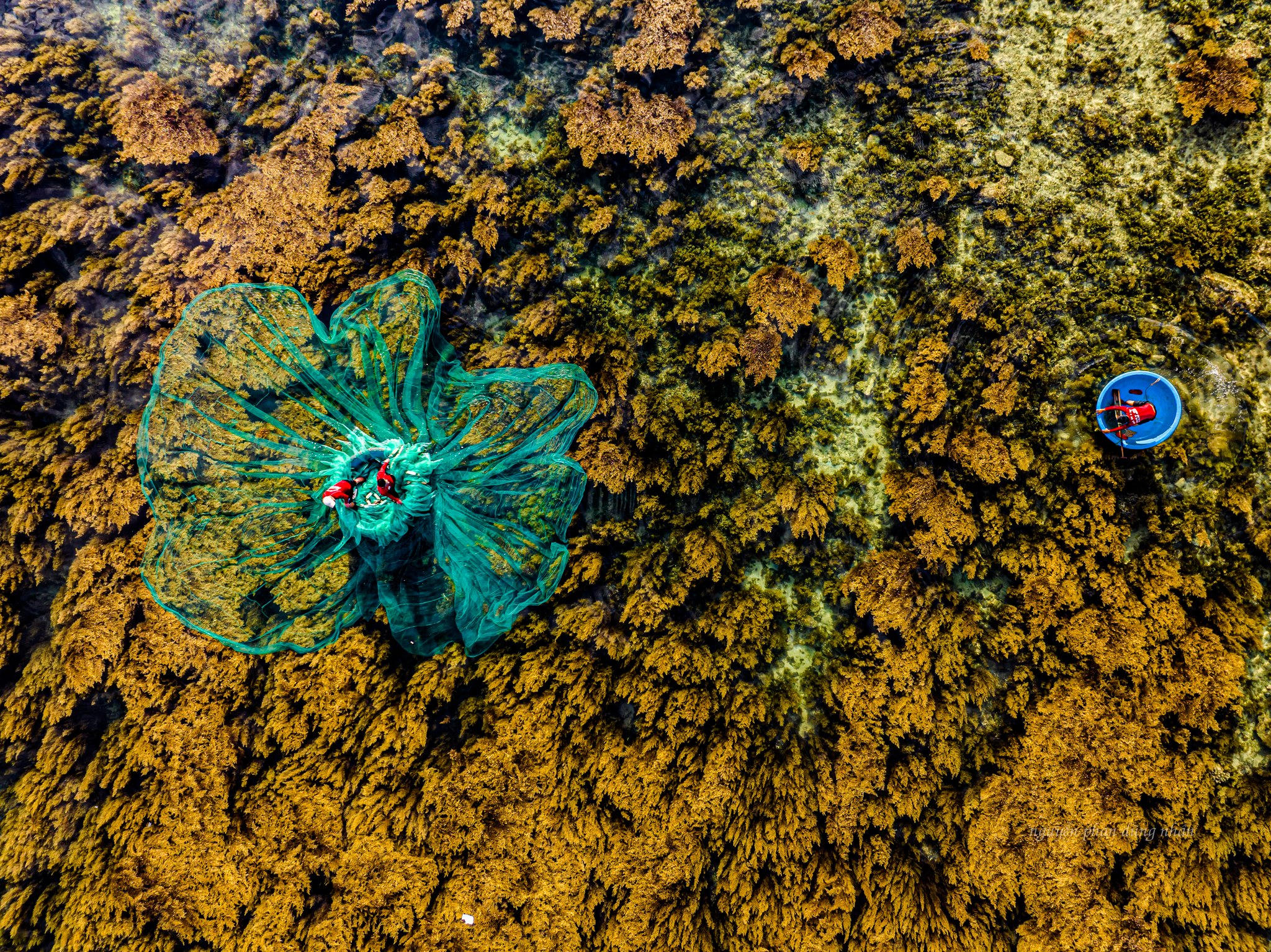 Anh Nguyễn Văn Bình - người dân xã Nhơn Hải cho biết, rong mơ rộ vào cuối tháng 5 và kết thúc vào tháng 7, tạo hệ sinh thái để cá, tôm, rùa biển và các loại phù du về sinh đẻ, sinh trưởng. Chính quyền đã cấm khai thác rong mơ để bảo vệ hệ sinh thái. Người dân chỉ được khai thác hải sản ở khu vực này, thường bằng thúng đôi để dễ bung lưới.