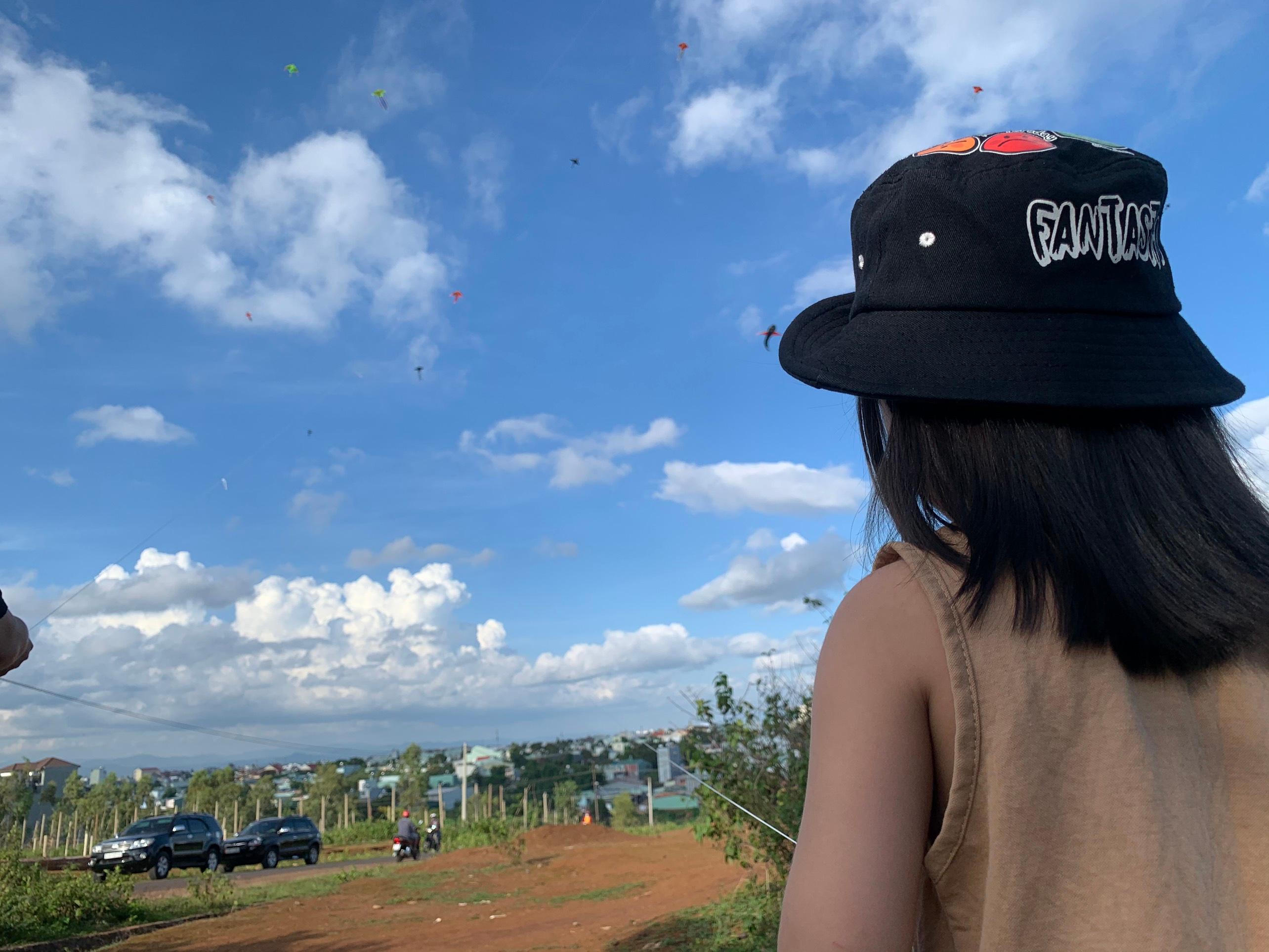 Vui mừng ngắm những cánh diều trên bầu trời rộng lớn. |