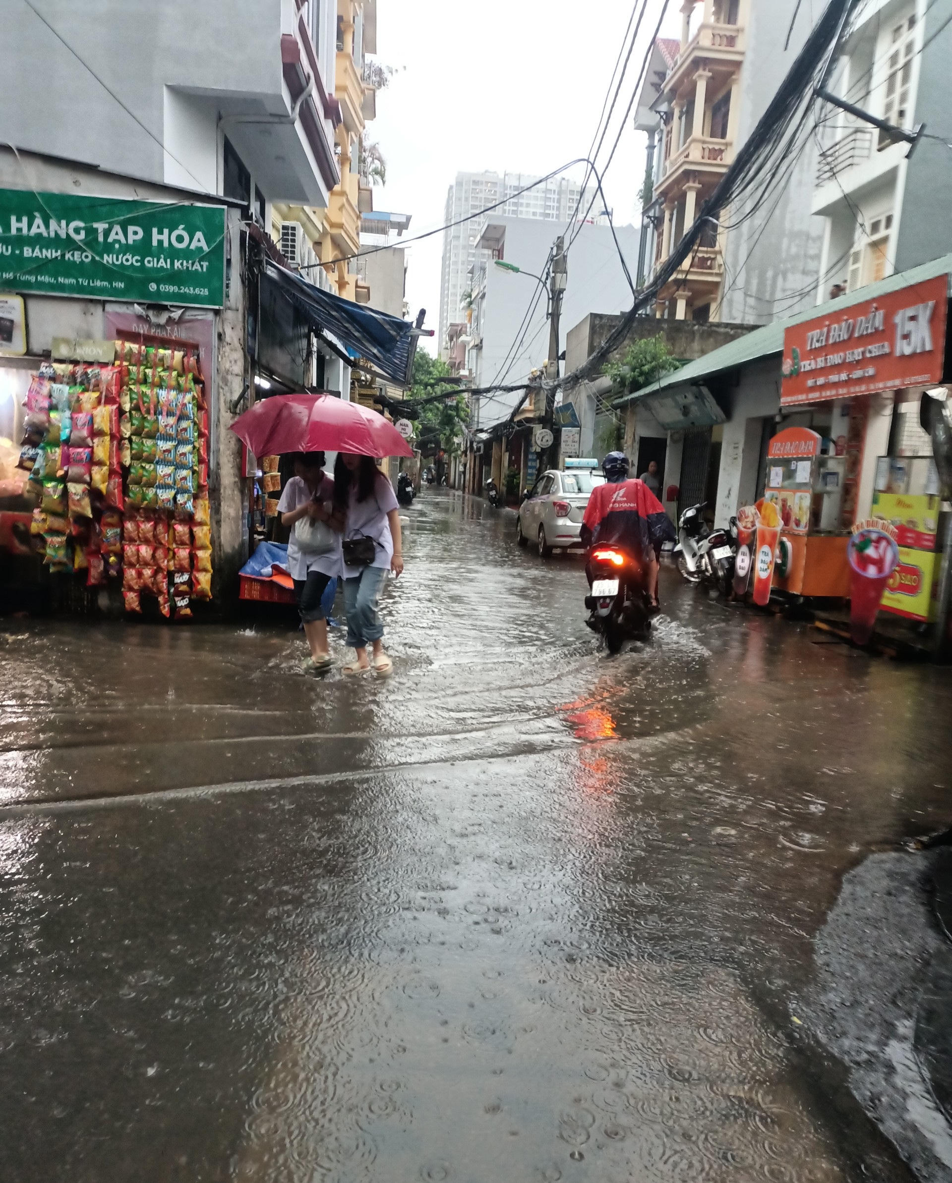 Tại một số tuyến đường như: Tô Hiệu (quận Hà Đông), Cầu Diễn, Hồ Tùng Mậu (quận Bắc Từ Liêm)..., mưa lớn đã gây ngập úng cục bộ, cá biệt có những đoạn đường nước ngập ngang bánh xe máy.