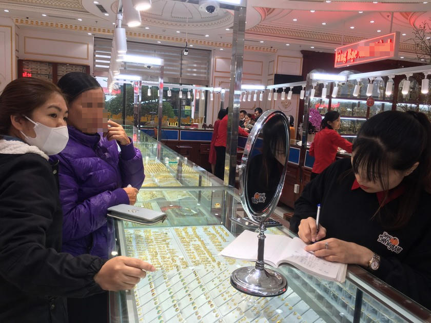 Theo nhân viên cửa hàng vàng bạc N.T, từ ngày 23 tháng Chạp, lượng khách mua vàng bắt đầu đông, vàng nhẫn bán rất chạy. Phóng viên ghi nhận, chỉ hơn 2 tiếng đồng hồ buổi sáng 27 Tết, cửa hàng bán ra vài chục chiếc nhẫn trơn các loại từ 1 đến 5 chỉ, giá mỗi chỉ là 6.470.000 đồng.