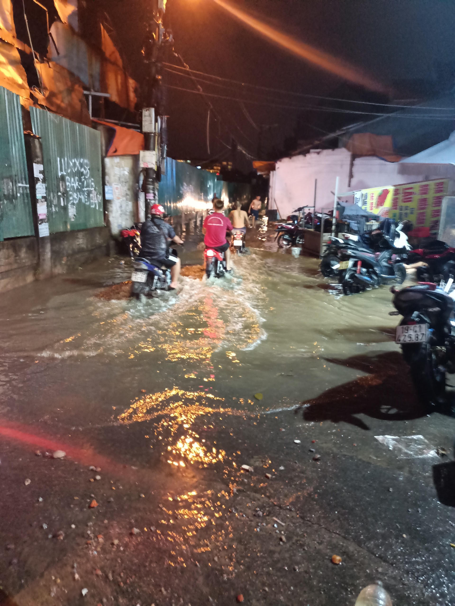 Ghi nhận của phóng viên, cơn mưa lớn bắt đầu từ khoảng 18h30 hôm nay dẫn đến các tuyến phố: Cầu Diễn, Hồ Tùng Mậu, Đồng Me, Lê Đức Thọ, Tân Mỹ..., ngập cục bộ. Có những điểm nước ngập ngang bánh xe máy.