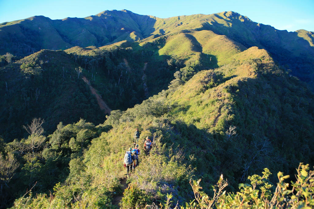 3. Sau cuộc trò chuyện thú vị với anh Thủa, chúng tôi tiếp tục hành trình chinh phục ngọn núi cao phía trước. Mục tiêu phải đến đỉnh tìm chỗ bằng phẳng cắm trại trước khi trời tối.
