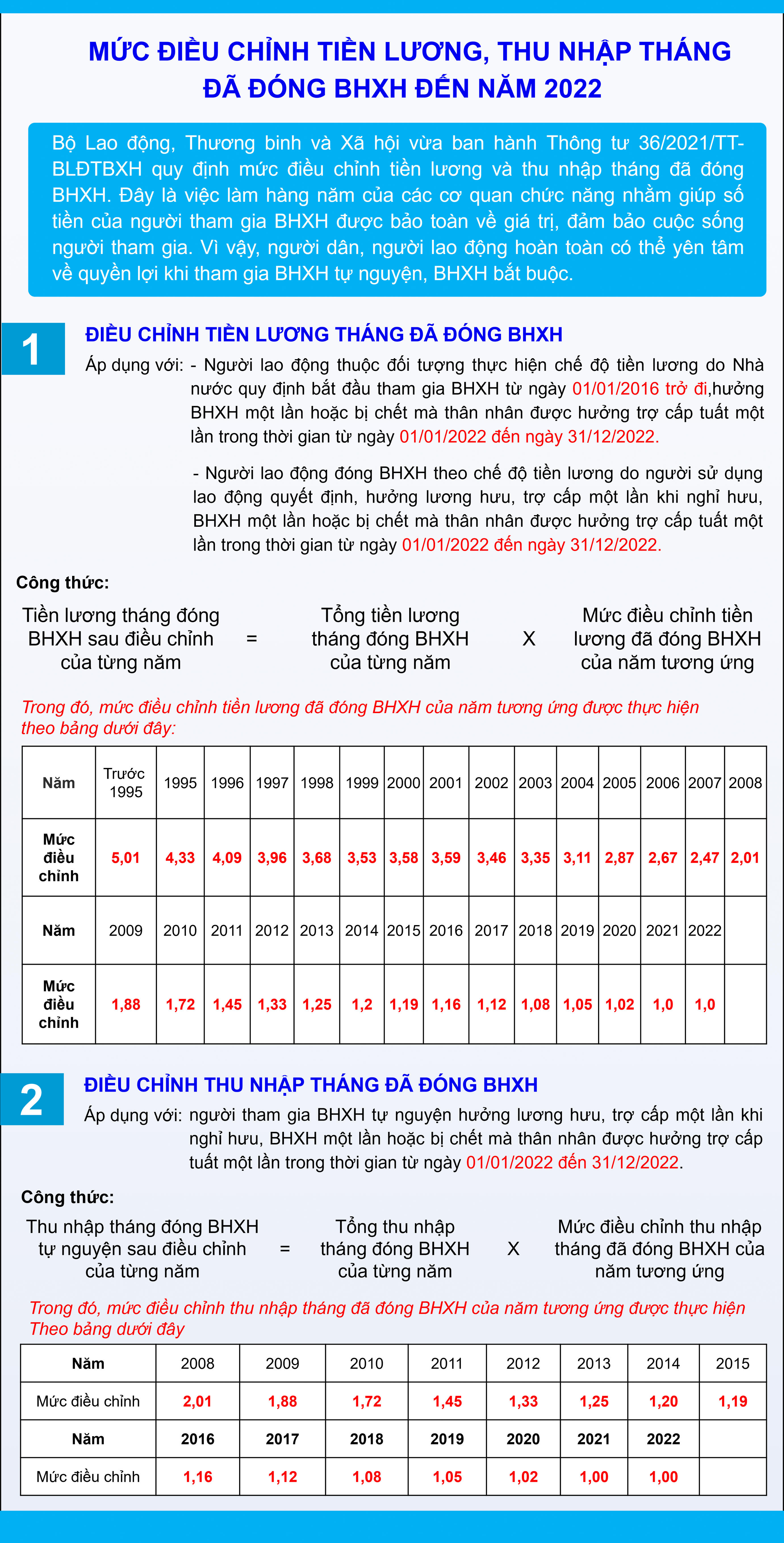 Mức điều chỉnh tiền lương và thu nhập tháng đã đóng BHXH năm 2022